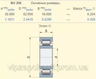 Подшипник Claas 243431.0 аналог NU206 KINEX - Словаччина
