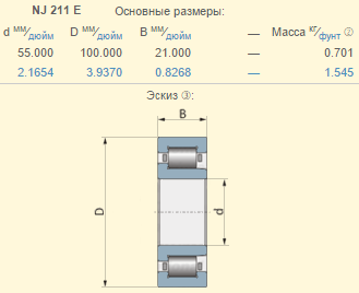 Подшипник роликовый Claas 243452.0 аналог NJ211E