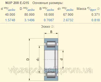 Подшипник Claas 243498.0 аналог NUP208-EG15 NSK