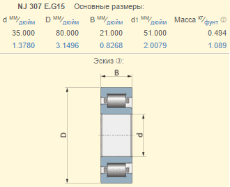 Подшипник Claas 243535.0 аналог NJ307EG15 KINEX - Словаччина