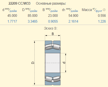 Подшипник Claas 243613.1 аналог 22209 CC/W33 FAG