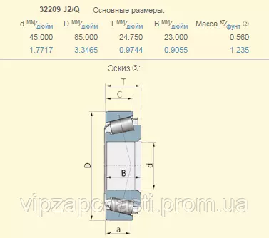 Подшипник конический роликовый Claas 243672.0 аналог 32209 J2/Q