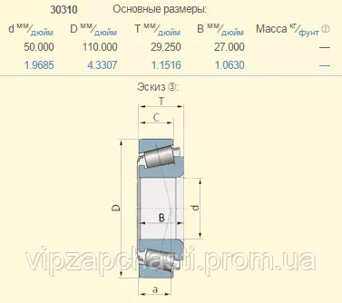 Подшипник роликовый конический Claas 243685.0 аналог 30310