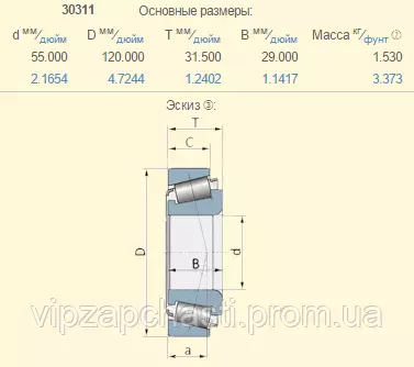 Подшипник роликовый конический Claas 243686.0 аналог 30311