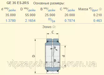 Подшипник Claas 605244.1 аналог GE35ES-2RS FLURO