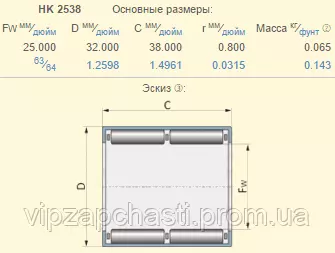Подшипник Claas 665411.0 аналог HK2538 NTN