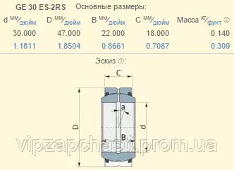Подшипник Claas 705057.0 аналог GE30ES-2RS Fluro