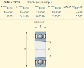 Подшипник шариковый с коническим отверстием Claas 734785.2 аналог 6010K-2RSR