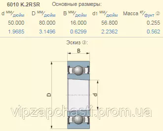 Подшипник Claas 734785.2 6010K-2RSR (під конус) SKF - бажано Оригінал