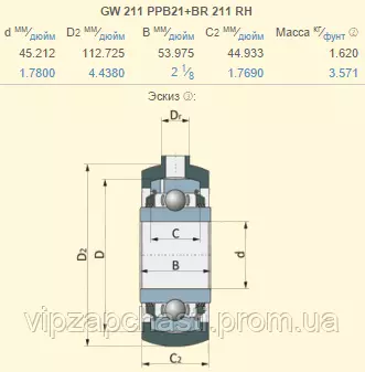 Подшипник Great Plains 822-026C аналог GW211PPB21+BR211RH