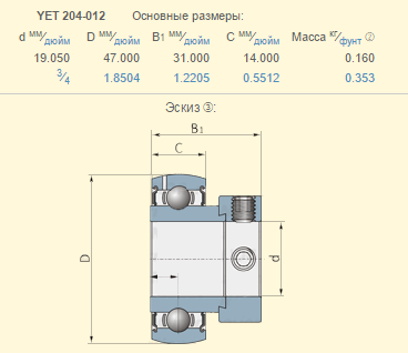 Подшипник шариковый Great Plains 822-040C аналог YET204-012​