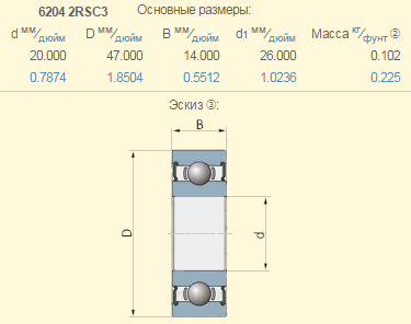 Подшипник JD30284 John Deere 6204-2RSC3 (з тепловим зазором) FAG