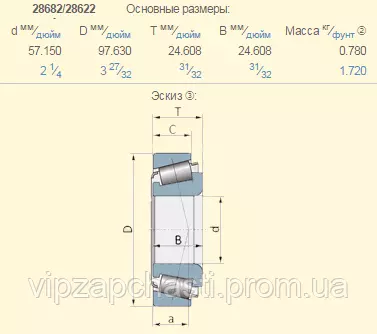 подшипник JD8952 / JD8258 John Deere 28682/28622​