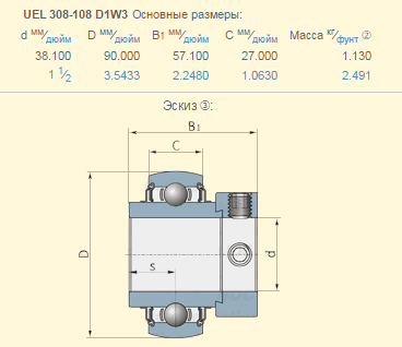 Подшипник John Deere AH151653 аналог UEL308-108D1W3​