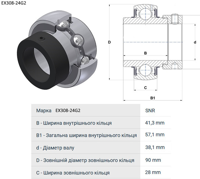 Подшипник John Deere AH151653 аналог UEL308-108D1W3, EX 308-24 G2 SNR