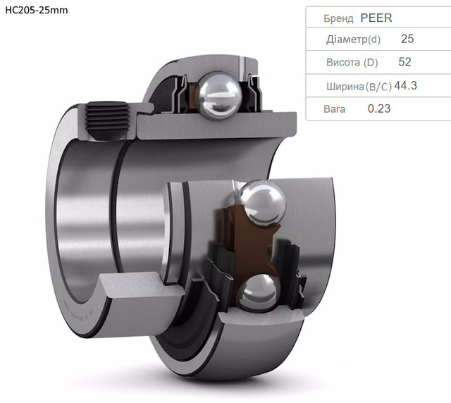 Подшипник John Deere AH225510 аналог HC205-25mm PEER, EX205G2, XGGE25KRRB, GE25KRRB, YEL205-2F