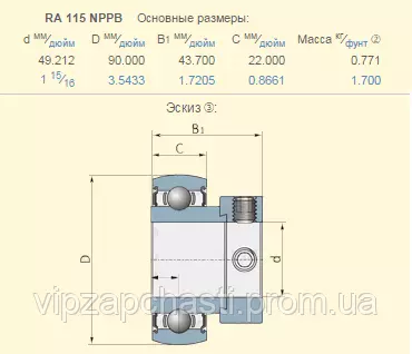 Подшипник John Deere AH64434 аналог ES210-31G2 SNR,  RA115NPPB, YET210-115