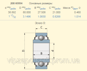 Подшипник John Deere AH96585 аналог 208KRR4​