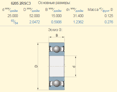 Подшипник с тепловым зазором John Deere AZ20217 аналог 6205-2RSC3​ (C3 ― тепловой зазор)