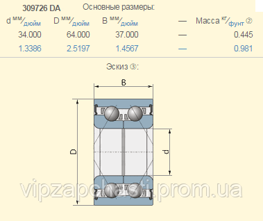 Подшипник John Deere AZ37456 аналог 309726DA,  3464W-52RSCS44, GB10884, VKBC20012, 256907, DAC3464W42RSCS