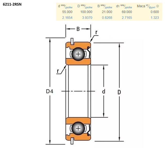 Подшипник John Deere AZ49013 аналог 6211-2RS​N