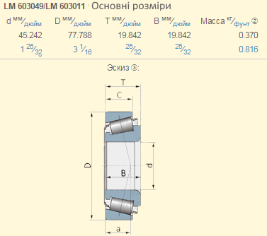Подшипник John Deere JD10527 аналог LM603049/LM603011 Kinex