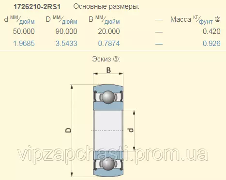 подшипник John Deere JD33006 аналог 1726210-2RS1, 210NPPB
