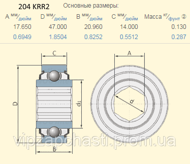 Подшипник John Deere JD7126 аналог 204KRR2 PEER