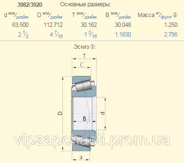 Подшипник John Deere JD7242 / JD7292 аналог 3982/3920 SKF