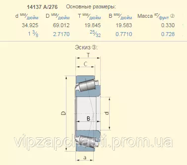 Подшипник John Deere JD7243 аналог 14137A/276