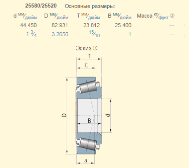 Подшипник John Deere JD7395/JD7418 аналог 25580/25520