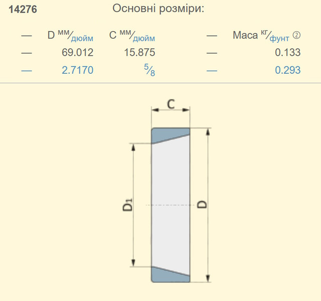 Зовнішня обойма подшипник John Deere JD7409 аналог 14276​