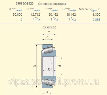 Подшипник John Deere JD8195 аналог 39573/39520