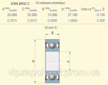 Подшипник John Deere JD8509 аналог 6304C3