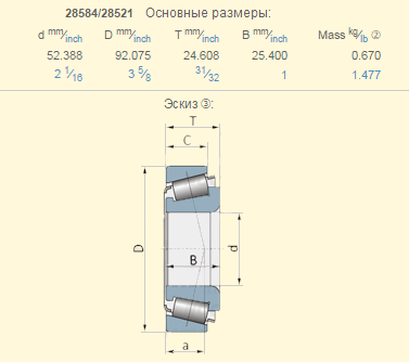 Подшипник John Deere JD8981 аналог 28584​/28521