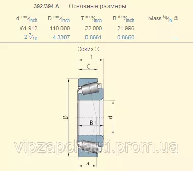 Подшипник John Deere JD9007+JD8206 аналог 392/394A​