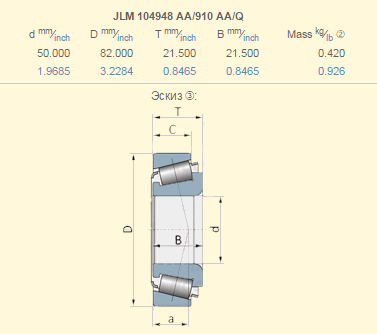 Подшипник John Deere JLM104948/JLM104910 (JD9041+JD9106, 199954+199955, 21872005, 533729R91, 357239, 21883265, 822-225C, 822-226C)