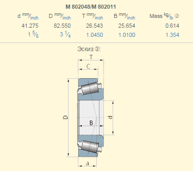 Подшипник John Deere JD9043+JD9109 аналог M802048/M802011​