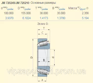 Подшипник John Deere JD9092+JD9147 аналог JM720249/JM720210
