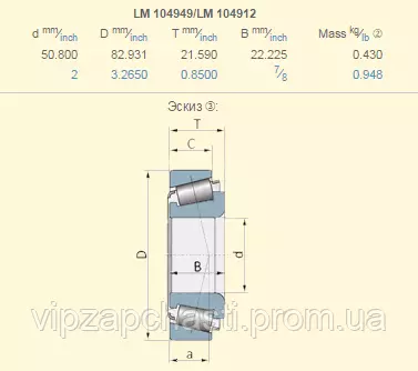 Подшипник John Deere R110458, JD9070+JD9170 аналог LM104949/LM104912 ZKL - Чехія