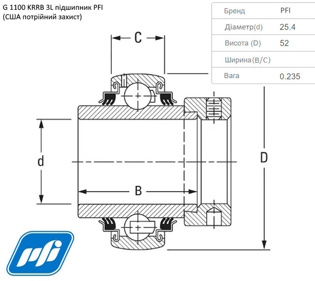 Подшипник John Deere JD9302 аналог G1100KRRB PFI