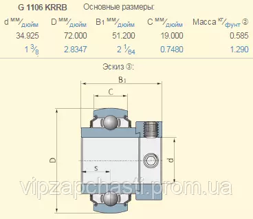 Подшипник John Deere JD9319 аналог G1106KRRB, YEL207-106-2F SKF