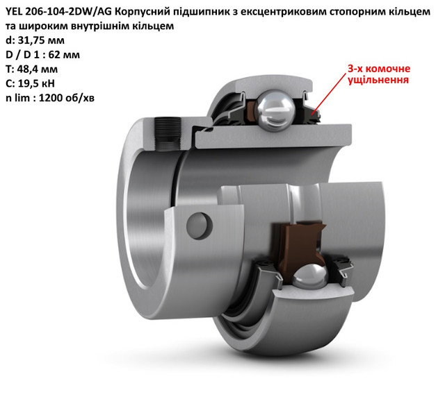 Подшипник John Deere JD9366 аналог 1103KRRB, YEL206-104-2DW SKF (не змащуємий)