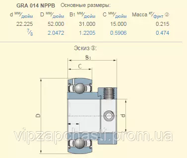 Подшипник John Deere JD9416 аналог GRA014NPPB, FH207-20G, ES207-20G2, YET207-104, GRA104NPPB-AS2/V