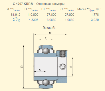 Подшипник John Deere JD9444 аналог G1207KRRB​, EX212-39G2, G1207KRRB-AS2/V-FA106