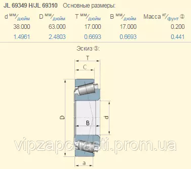 Подшипник John Deere JD9602 аналог JL69349 / JL69310 ZKL (Чехія)