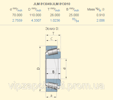 Подшипник John Deere R108547+R108546 аналог JLM813010​