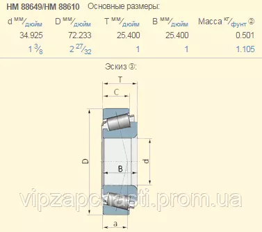 Подшипник John Deere R72090 аналог HM88649/HM88610 NTN