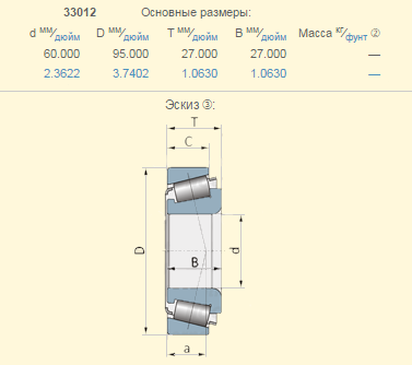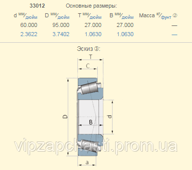 Подшипник John Deere RE203754 аналог 33012 FBJ