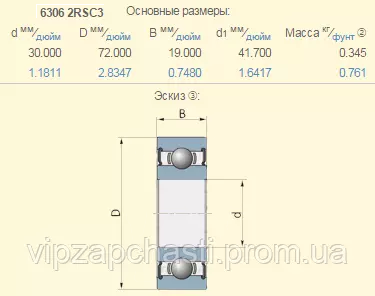 Подшипник шариковый John Deere RE65651​ аналог 6306-2RSC3 (С3 ― тепловой зазор)